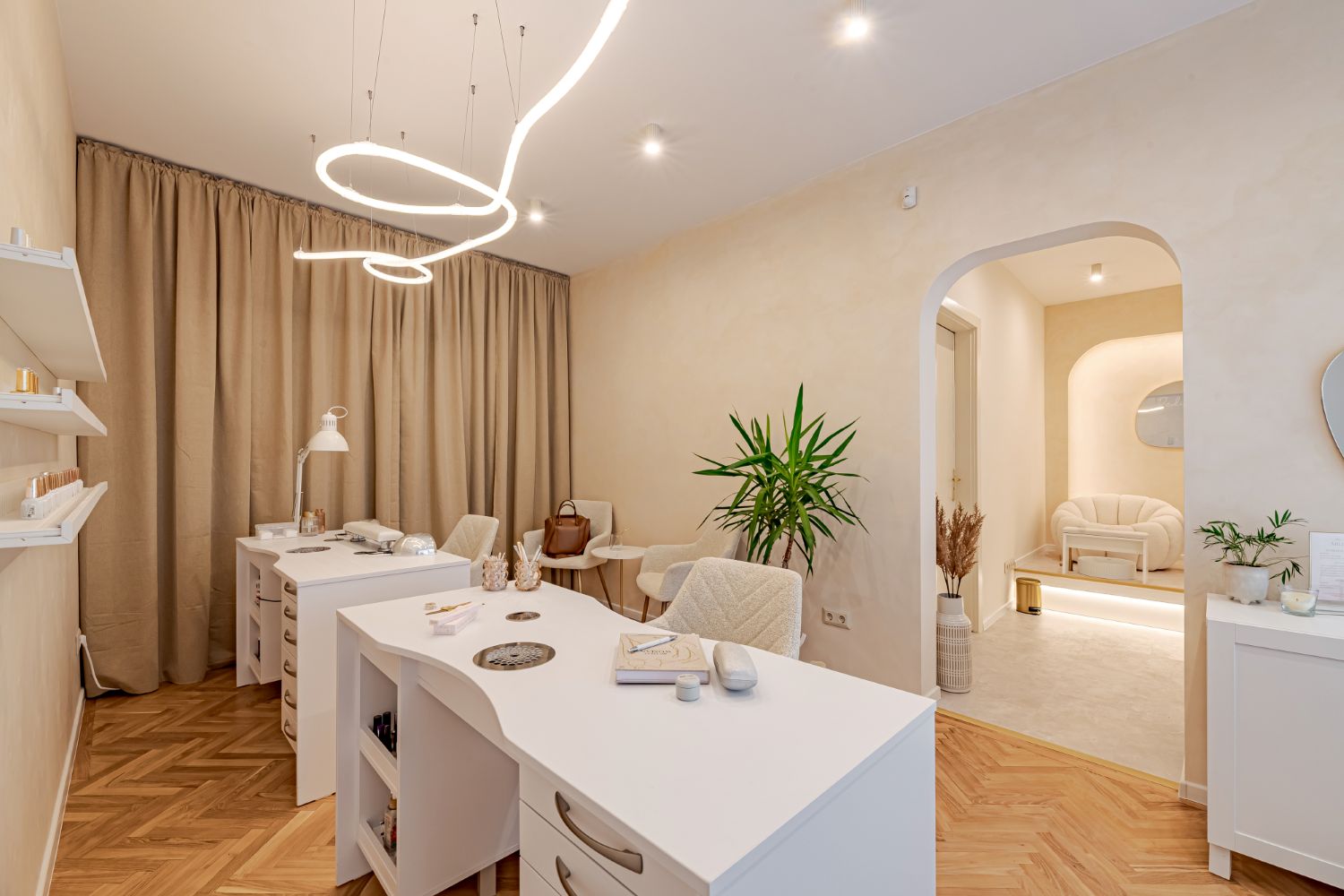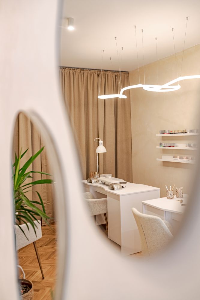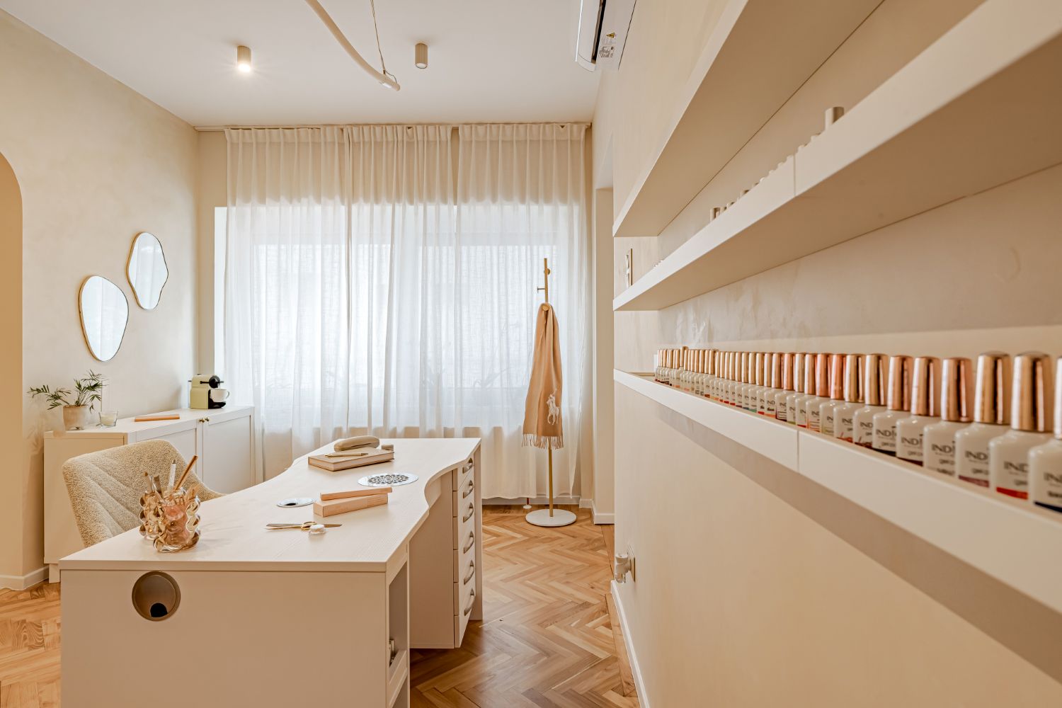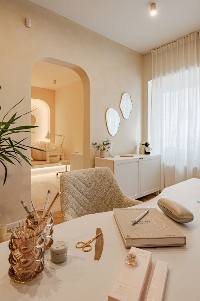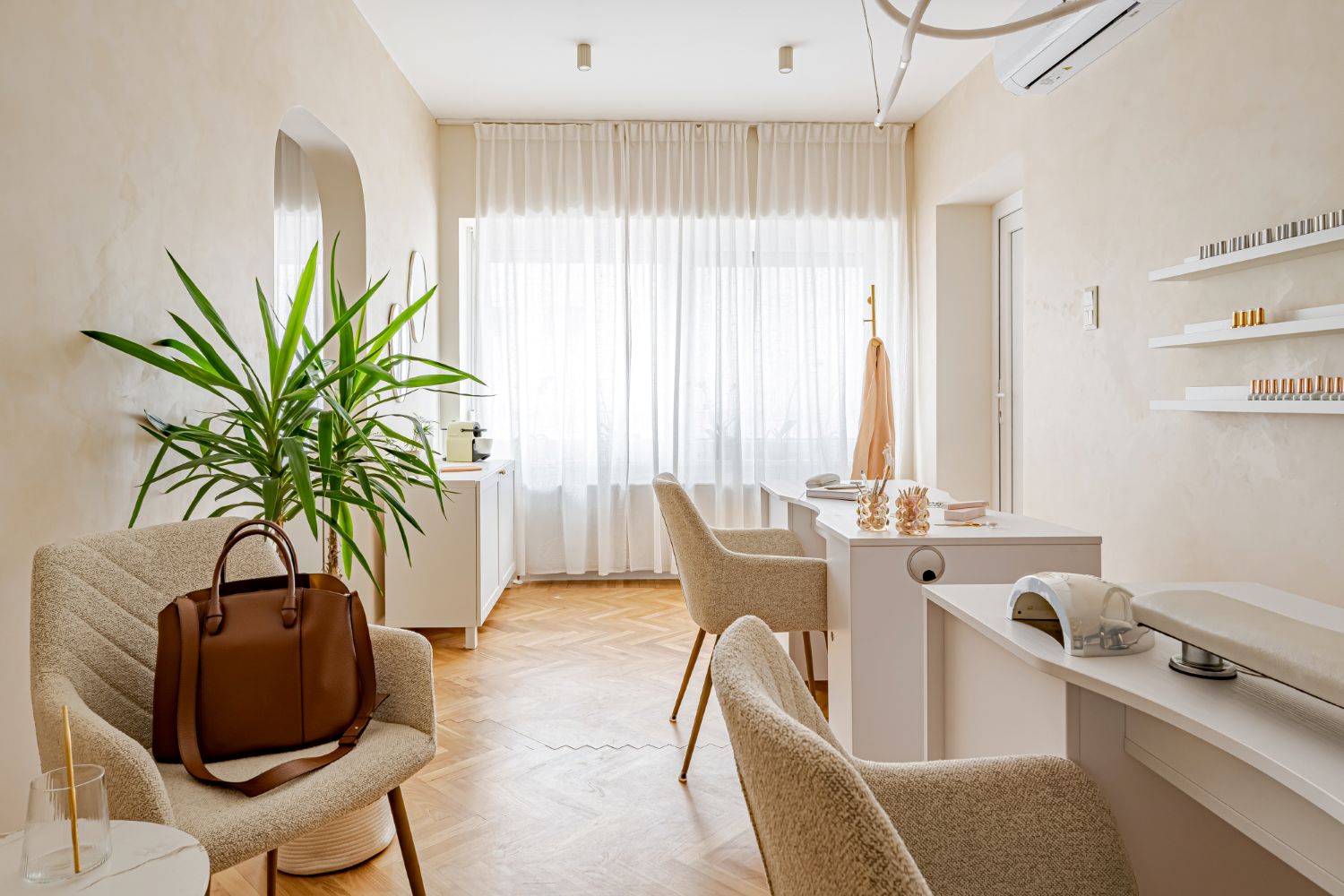 A Project SM – Shine and More – nem csupán egy körömszalon, hanem egy olyan hely, ahol a szépségápolás élménnyé válik. A koncepció alapja az volt, hogy a vendégek ne csak szépüljenek, hanem feltöltődjenek, kikapcsolódjanak, és egy kicsit újjászülessenek – kívül és belül egyaránt. A púderesen könnyed tónusok nyugalmat és harmóniát árasztanak, miközben teret adnak a női energiák kibontakozásának. Az arany részletek finoman emelik a tér csillogását, így a szalon egyszerre lágy, elegáns és inspiráló atmoszférát teremt.
