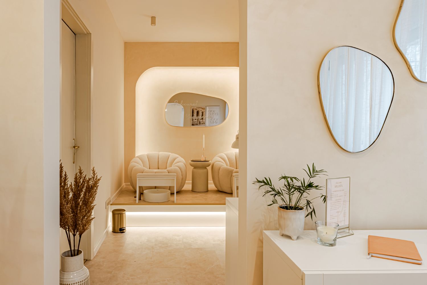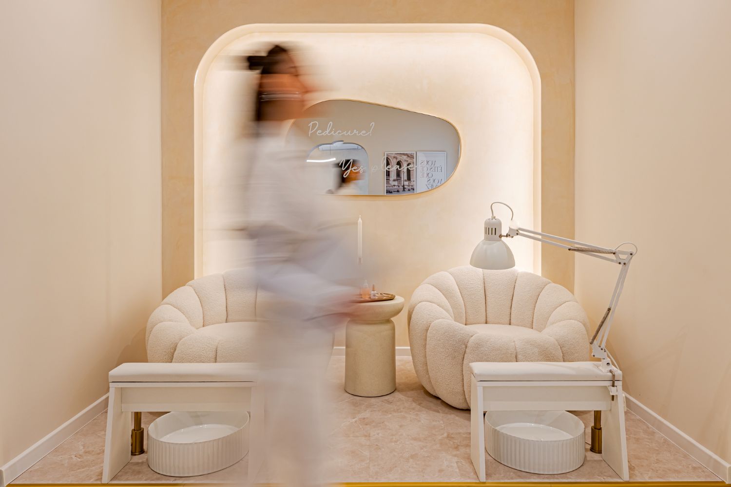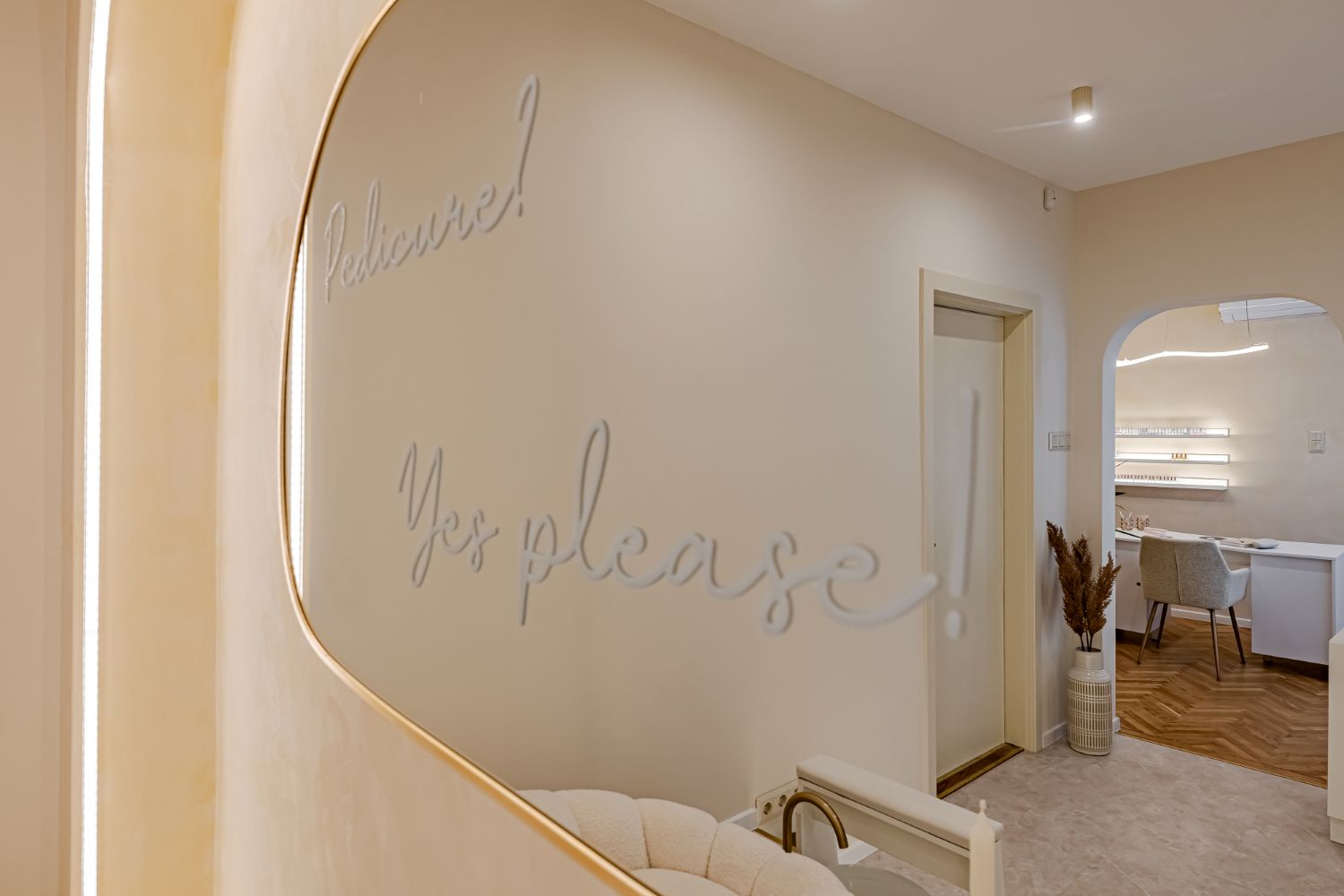 A Project SM – Shine and More – nem csupán egy körömszalon, hanem egy olyan hely, ahol a szépségápolás élménnyé válik. A koncepció alapja az volt, hogy a vendégek ne csak szépüljenek, hanem feltöltődjenek, kikapcsolódjanak, és egy kicsit újjászülessenek – kívül és belül egyaránt. A púderesen könnyed tónusok nyugalmat és harmóniát árasztanak, miközben teret adnak a női energiák kibontakozásának. Az arany részletek finoman emelik a tér csillogását, így a szalon egyszerre lágy, elegáns és inspiráló atmoszférát teremt.