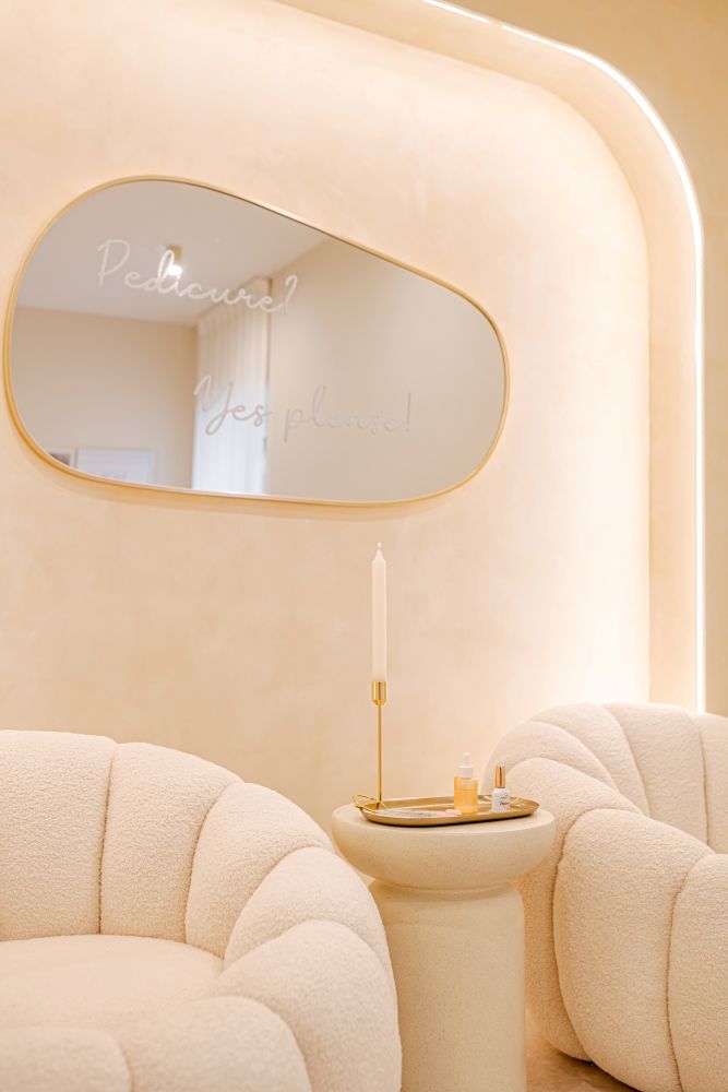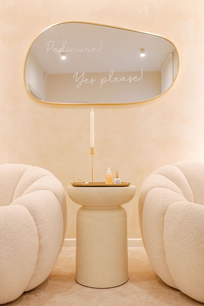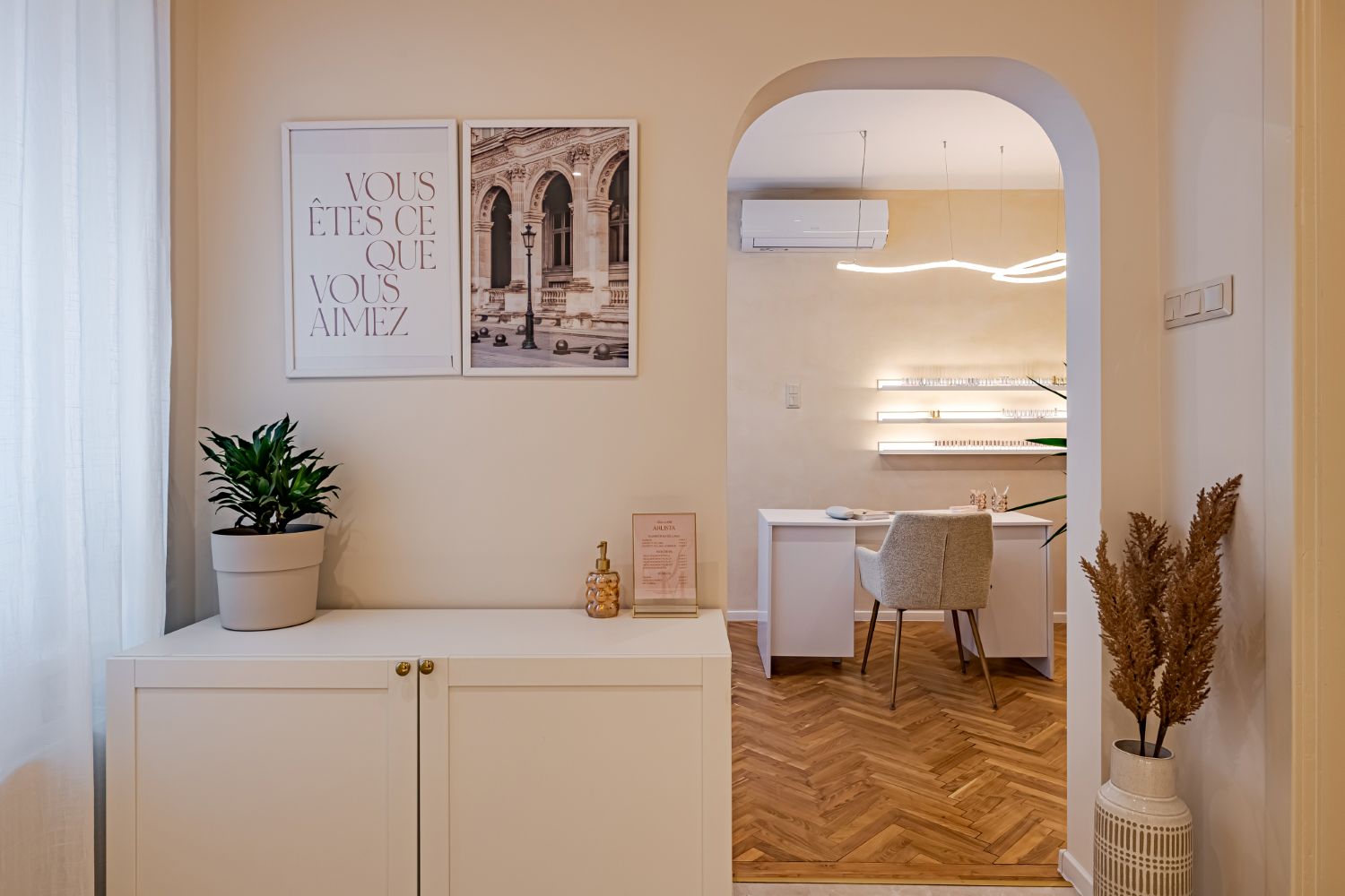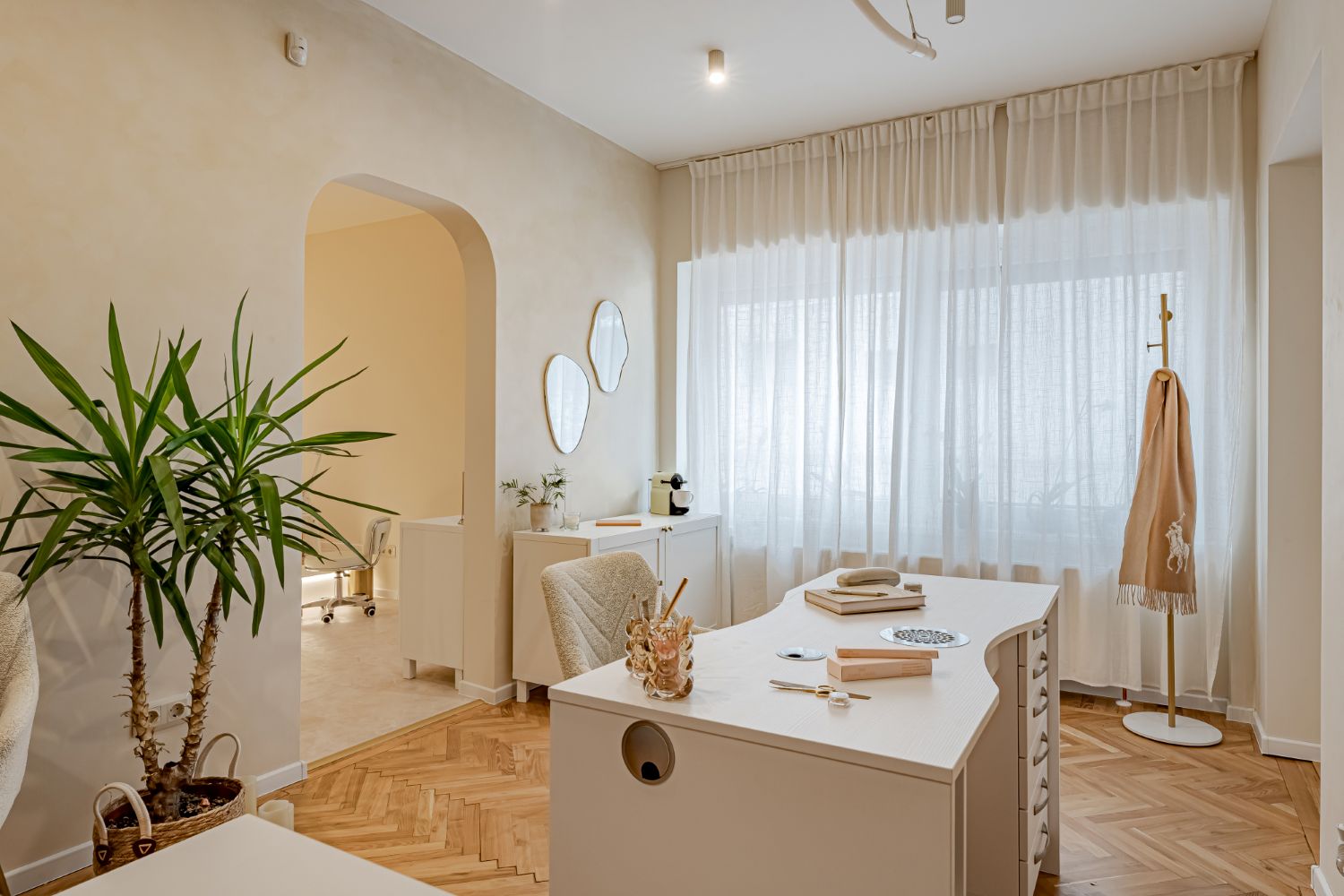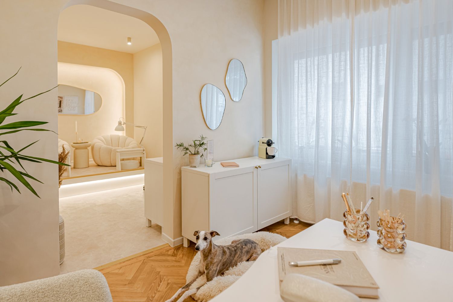 A Project SM – Shine and More – nem csupán egy körömszalon, hanem egy olyan hely, ahol a szépségápolás élménnyé válik. A koncepció alapja az volt, hogy a vendégek ne csak szépüljenek, hanem feltöltődjenek, kikapcsolódjanak, és egy kicsit újjászülessenek – kívül és belül egyaránt. A púderesen könnyed tónusok nyugalmat és harmóniát árasztanak, miközben teret adnak a női energiák kibontakozásának. Az arany részletek finoman emelik a tér csillogását, így a szalon egyszerre lágy, elegáns és inspiráló atmoszférát teremt.